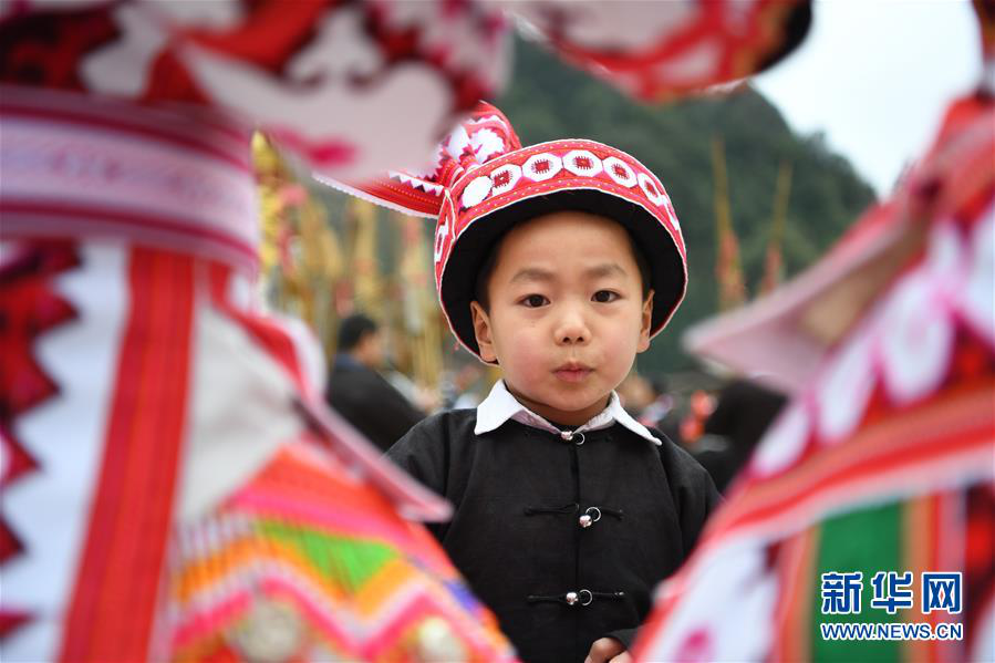 2月11日在贵州省榕江县朗洞镇岑最村拍摄的参加跳芦笙舞活动的苗族小男孩。当日是大年初七,贵州省黔东南苗族侗族自治州榕江县朗洞镇岑最村的苗族同胞邀请周边村寨的芦笙队到寨上做客,吹芦笙、跳芦笙舞,以传统民俗的方式欢庆新春。(王炳真)