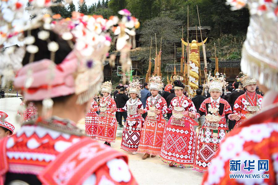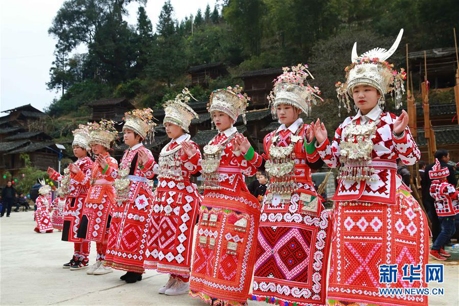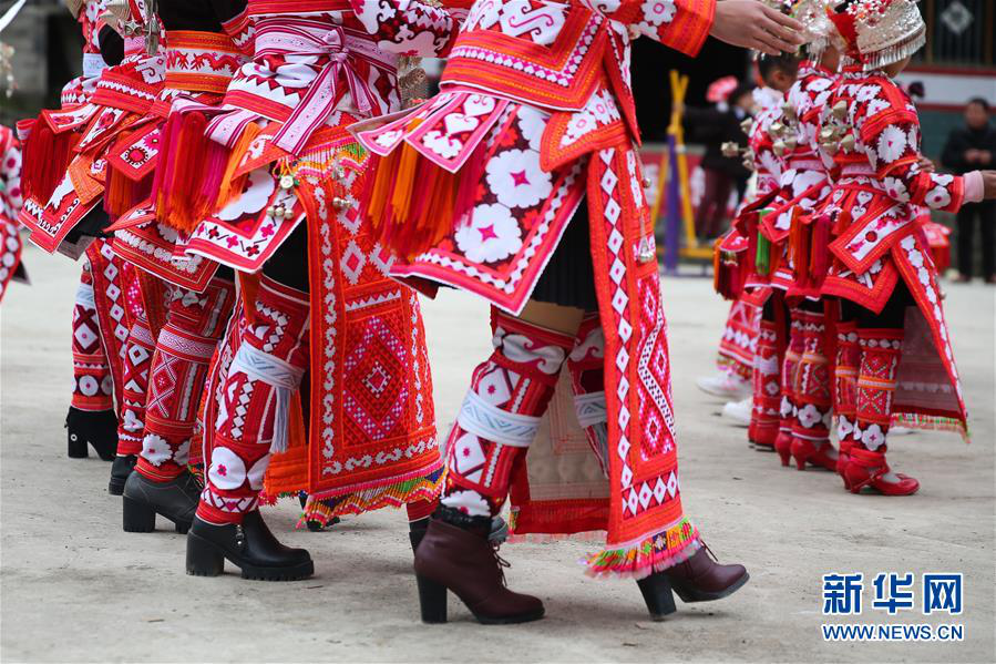 2月11日,在贵州省榕江县朗洞镇岑最村,苗族同胞在跳芦笙舞。