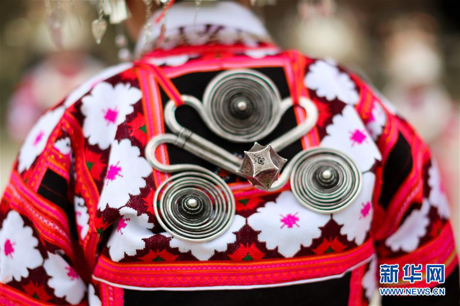 2月11日在贵州省榕江县朗洞镇岑最村拍摄的苗族少 女身上的银饰。