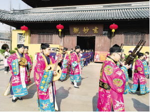 道教音乐是伴随道教产生、发展而逐渐形成的,是道教文化的重要组成部分。苏州玄妙观道教音乐是以苏州方言配合乐器表演表达道教信仰、宣传道教教义思想的音乐。2006年,苏州玄妙观道教音乐被列入第一批国家级非物质文化遗产名录,道教音乐的传承保护日益得到重视。
