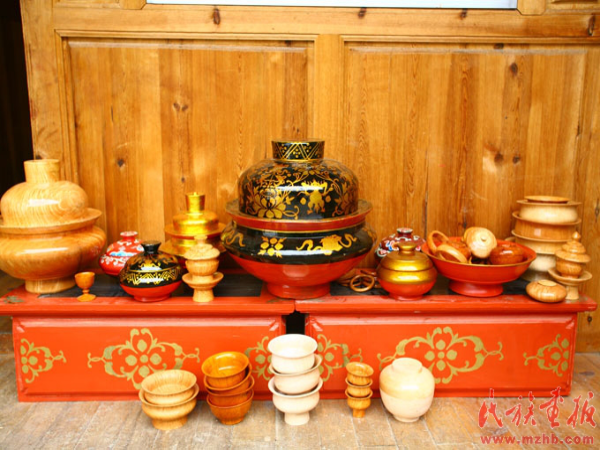 历史上藏族曾是游牧民族,以畜牧业为主,人们的生产生活随春夏秋冬草场的变化而迁徙,流动性大,易碎的陶瓷器皿和沉重金属制品都不便携带,因此轻巧实用、携带方便的木碗就成了他们的重要生活用品之一。