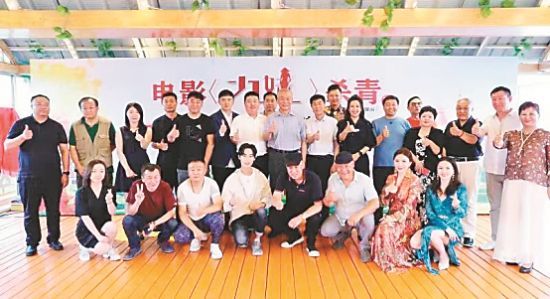 关机仪式上,电影《九妹》主创人员合影。