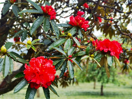 每年2月底3月初,散落于樱花谷茶梯中的马樱花将心从树干中抽出,高高托举在枝头,争奇斗艳、竞相开放,在云雾缥缈的无量山中装点着神仙姐姐的家园。