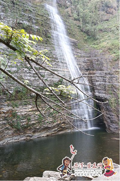 而现在这一美轮美奂的仙境就呈现在我们的面前:剑湖四周林木葱郁,崖壁耸立,一条巨大的飞瀑,从几十米高的悬崖飞泻而下,喷珠吐玉,气势磅礴。悬崖就是无量玉壁,其下形成一个四十余米宽阔的深潭,这就是剑湖了。潭边有一块巨石,可容几十人立于石上倾听飞瀑轰鸣,体会仙人练剑留下的“无量仙影”……