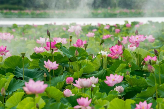 据统计,普者黑每年的6至9月盛开的荷花有200多个品种,最特别的是大洒锦、小洒锦、红莲、白莲四个品种,有单瓣、复瓣、重瓣及重台等,涵盖了中国荷花的3个系、50个群和28个组。