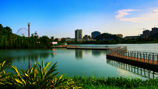 玫瑰湖公园位于广西梧州市长洲区,规划范围为站前大道以南、三龙大道以西,是人流最集中的地段。基地属于丘陵地带,地形起伏较大呈西高东低、外高内低的整体趋势,总面积80.4公顷,其中水体面积33.33公顷。玫瑰湖公园立足于梧州文化,引入“自然生态”的规划理念,将其打造成红岭新区生态型综合公园,成为市民、游客游览、观赏、休憩、娱乐以及锻炼身体的重要场所。
